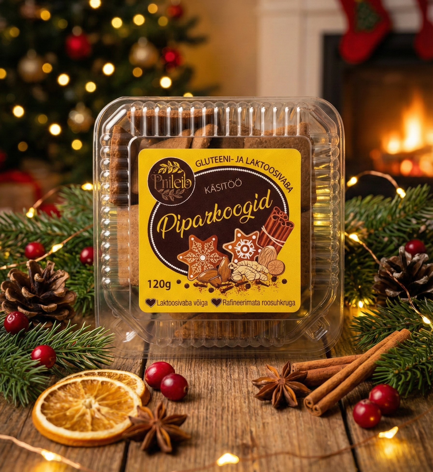 Koostis: mahe toortatrajahu, rafineerimata roosuhkur, vesi, laktoosivaba või, muna, sooda, psüllium, kaneel, kardemon, ingver, muskaatpähkel, nelk, must pipar, sool
